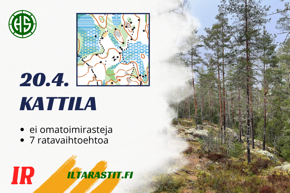 Maanantaina 20. huhtikuuta Iltarastit järjestetään Kattilassa. Metsään voi lähteä klo 16.30–19, ja maali sulkeutuu klo 20. Ilmoittautua ja maksaa voi joko etukäteen Rastilipussa tai tapahtumapaikalla.