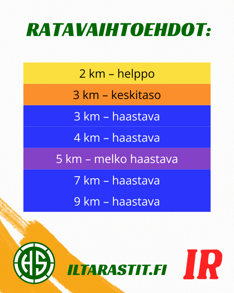 Otimme Iltarasteilla käyttöön suunnistuksen taitotasojen värimallin kaudella 2026.