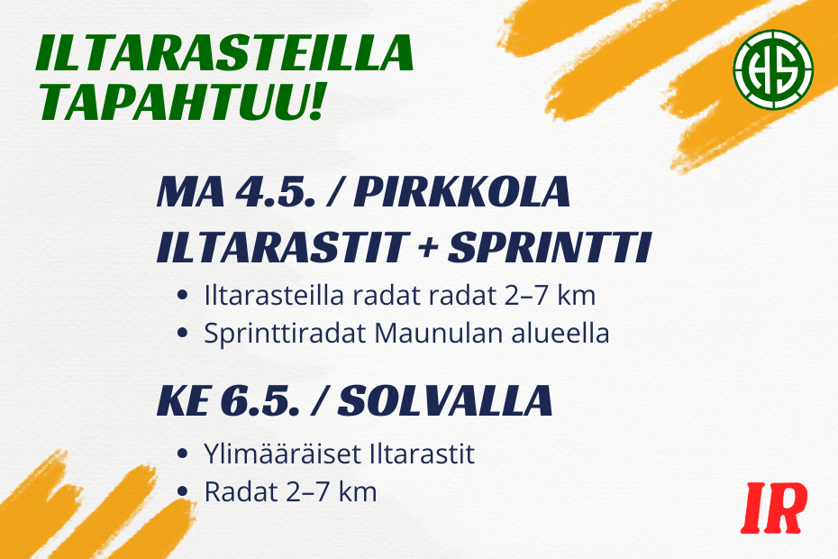 Samalla viikolla järjetetään myös ylimääräiset Iltarastit keskiviikkona 6. toukokuuta, jolloin suunnistetaan Solvallassa 2–7 kilometrin radoilla.